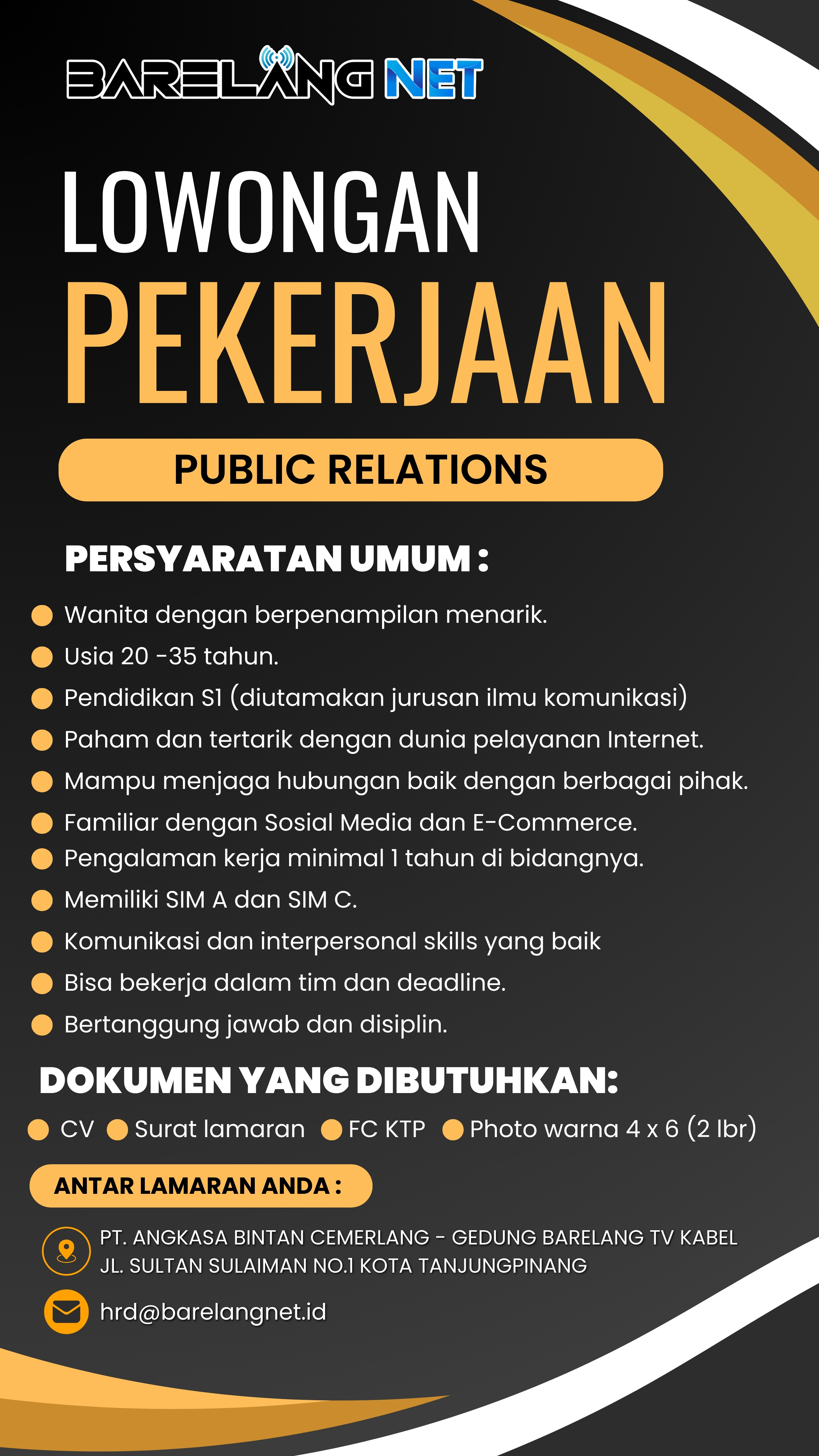 Bergabunglah bersama PT. Angkasa Bintan Cemerlang (Barelang NET) dan jadilah bagian dari